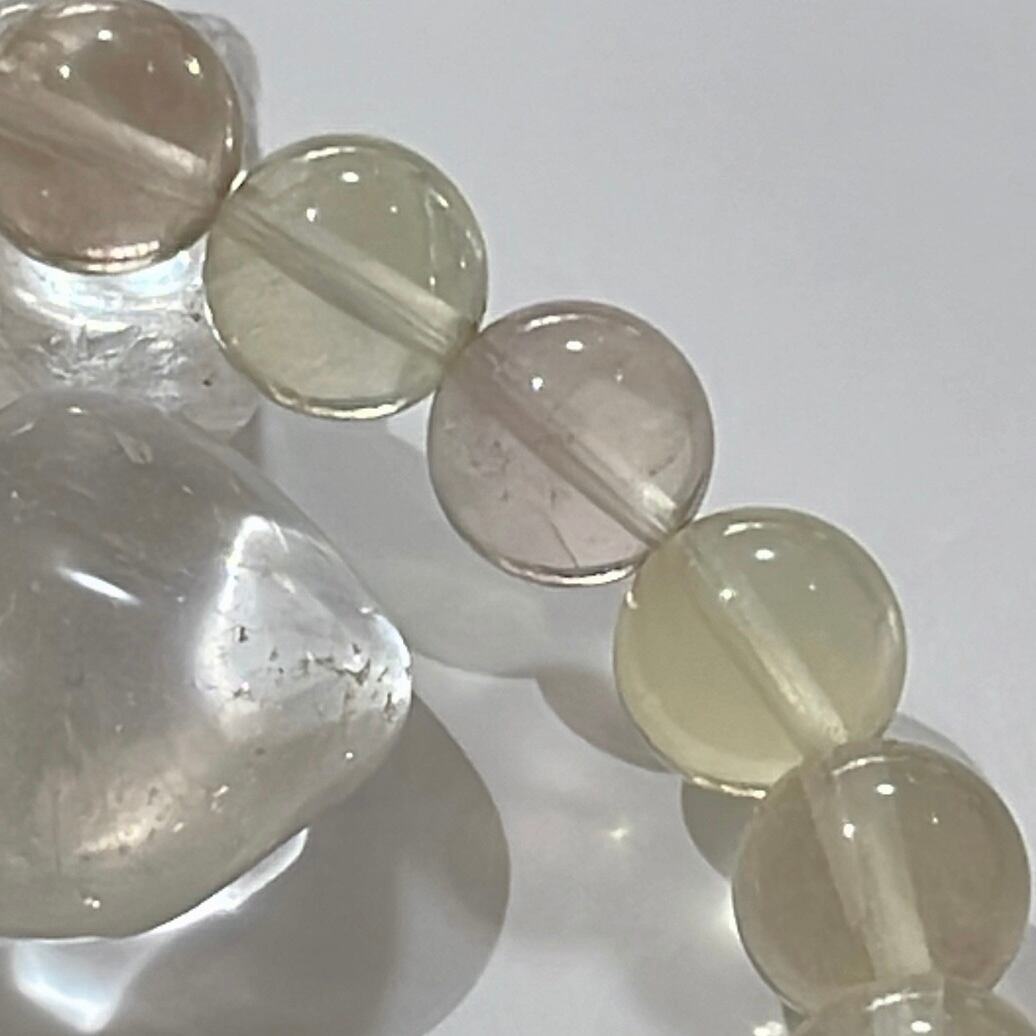 一粒一粒が淡く優しいパステルカラーに色づいた、マルチカラーフローライトのブレスレットです。