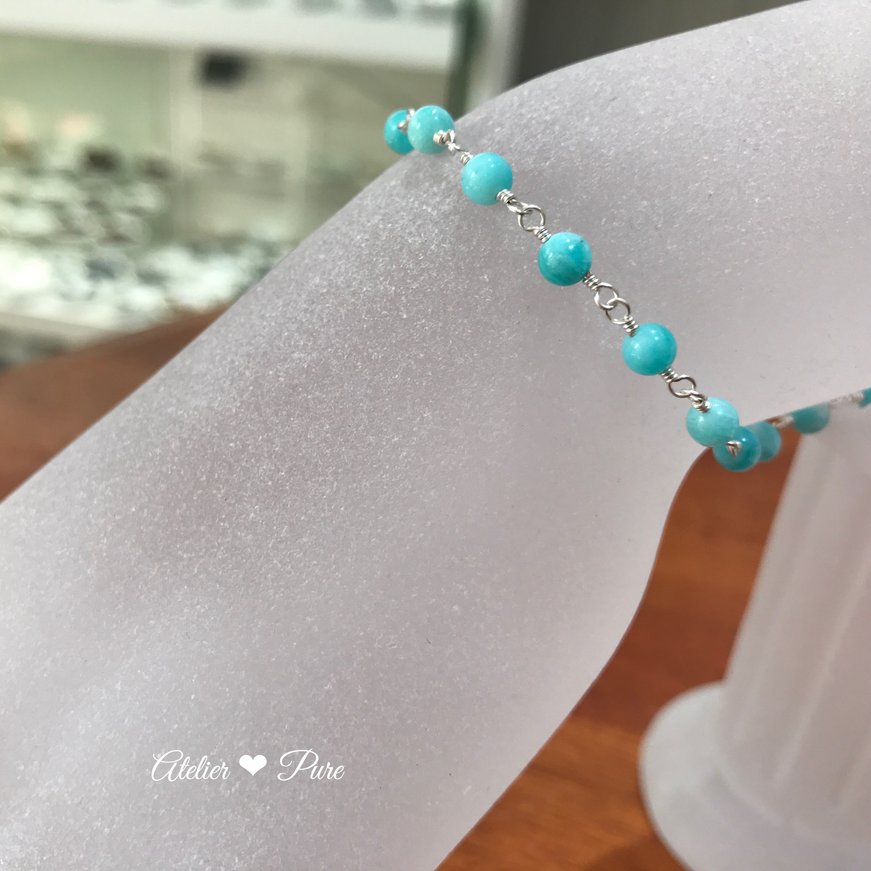 4ミリサイズの発色の良いペルー産のアマゾナイトを繋いで、内寸約15センチのブレスレットに仕立てました。