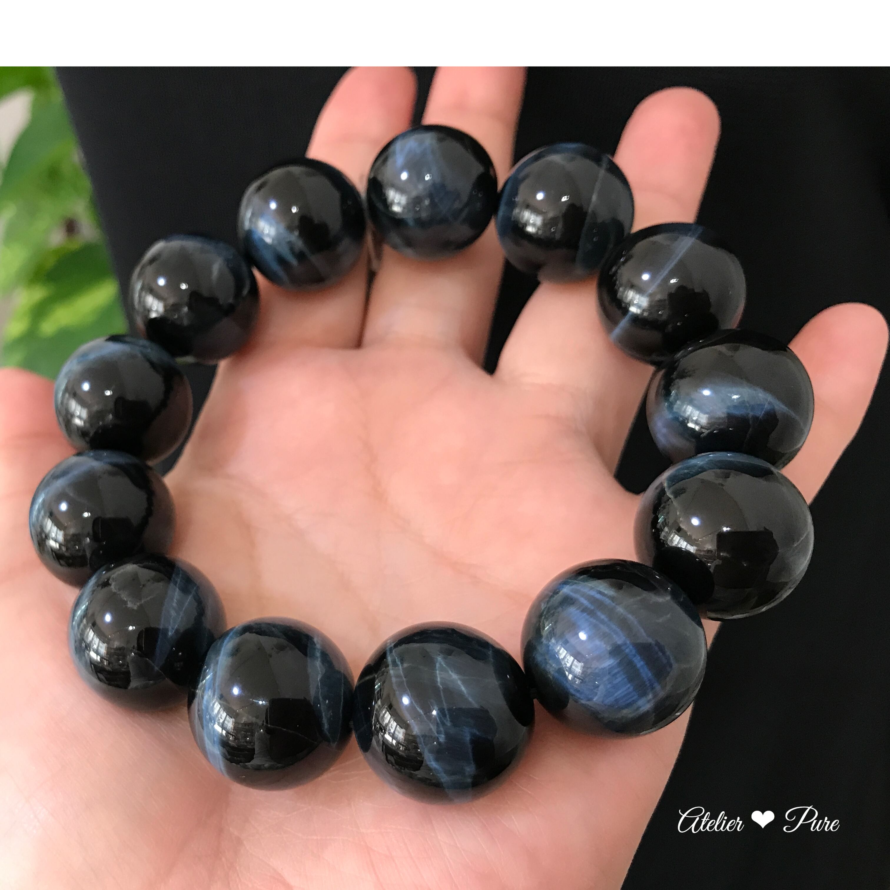 18ミリ/粒 のホークスアイ(ブルータイガーアイ)ブレスレット