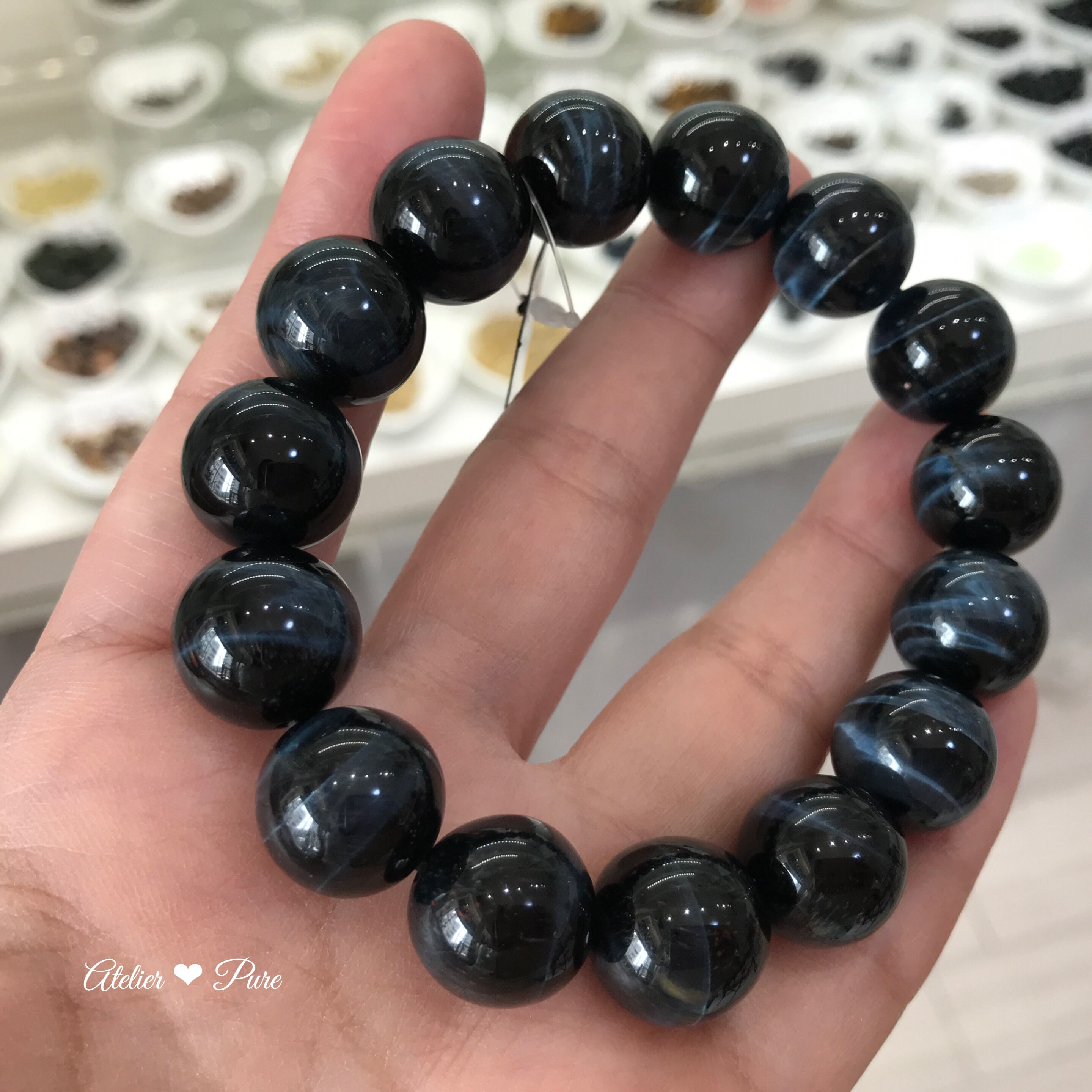14ミリ/粒 ホークスアイ(ブルータイガーアイ)のブレスレット