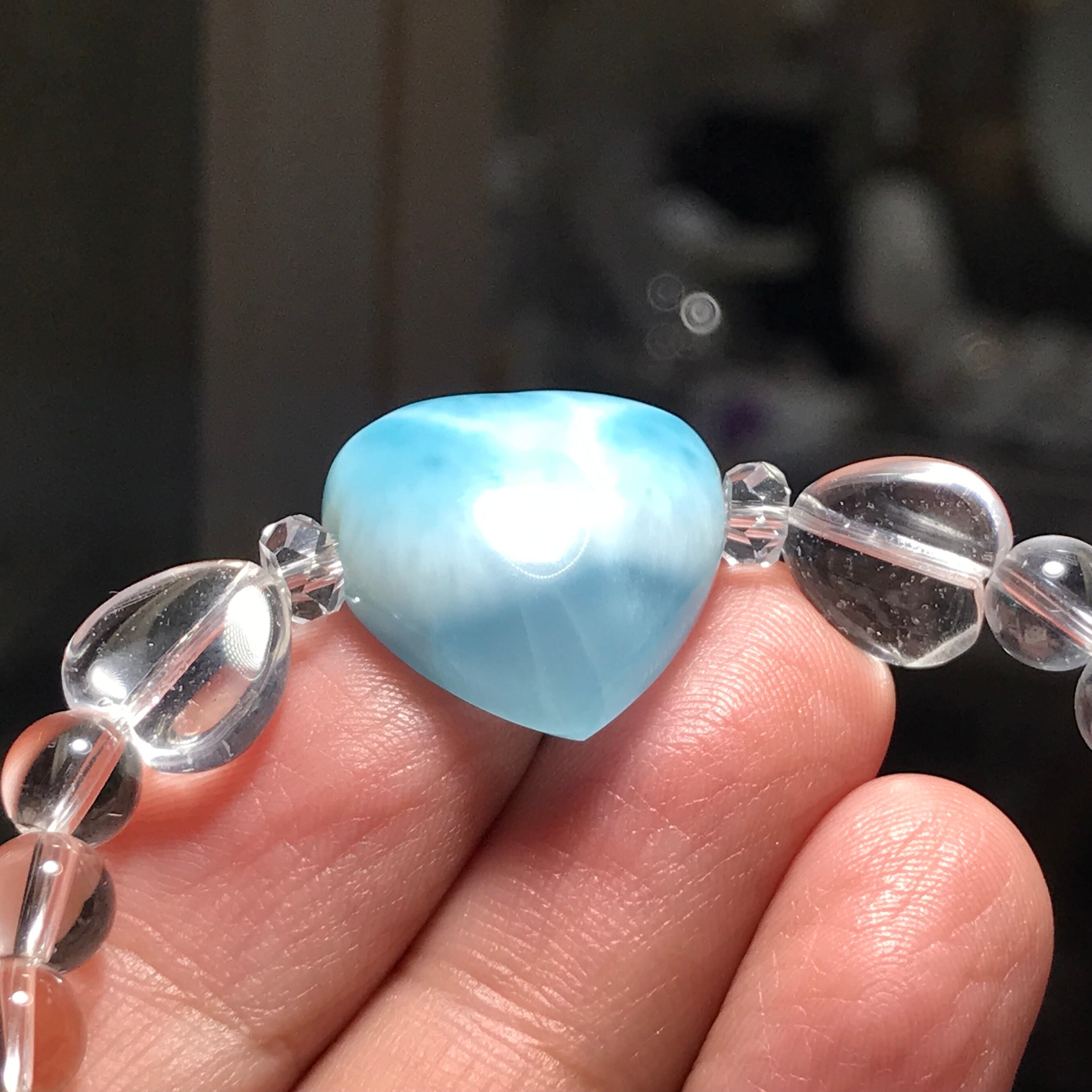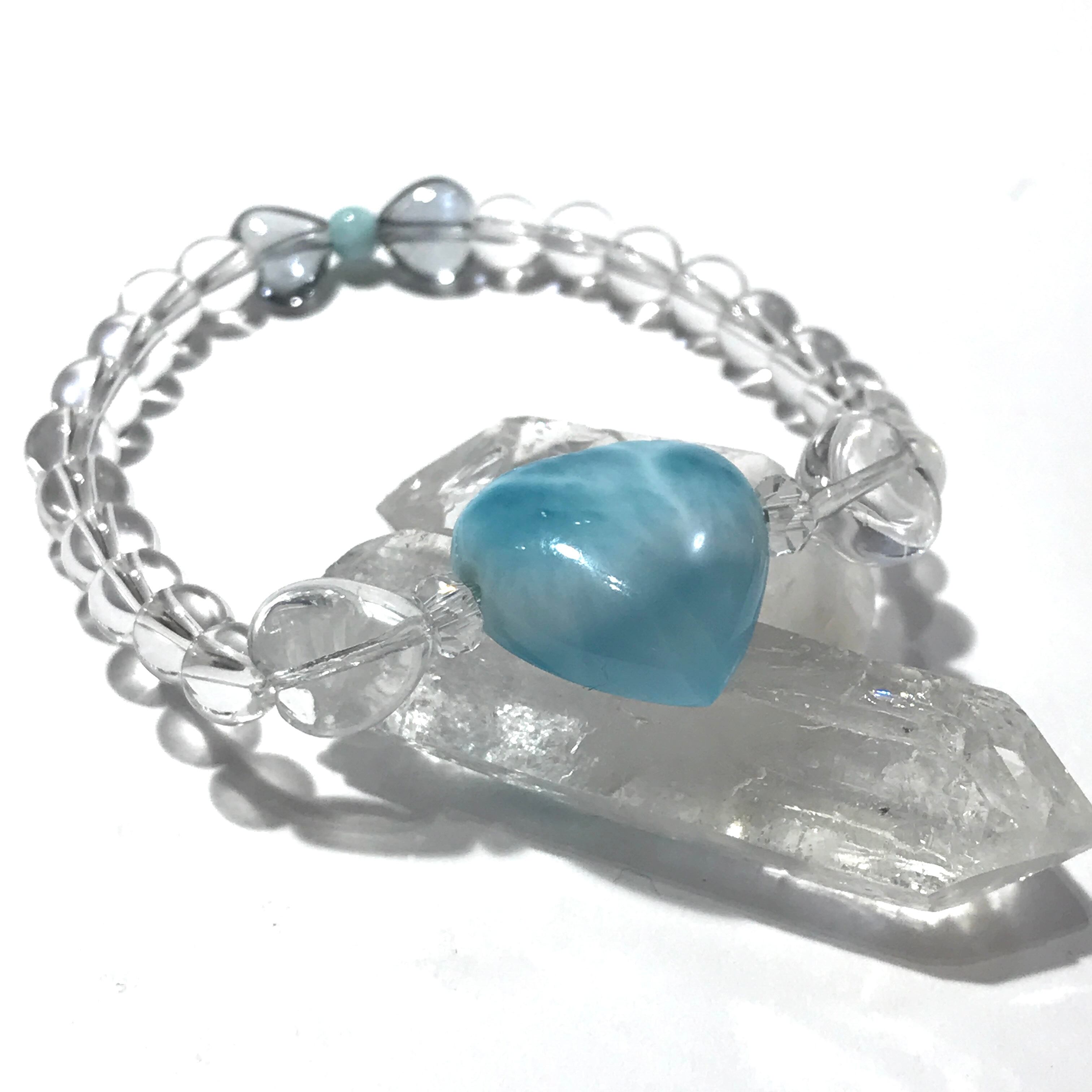◆ハートのラリマーと水晶を合わせたブレスレットです。